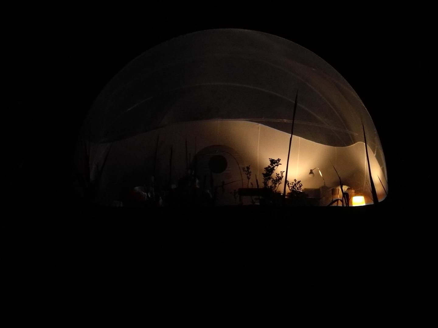 Lors des nuits dégagées, la transparence de la bulle permet de profiter du ciel, de la lune et de l’atmosphère nocturne dans un environnement encore préservé de la forte pollution lumineuse.